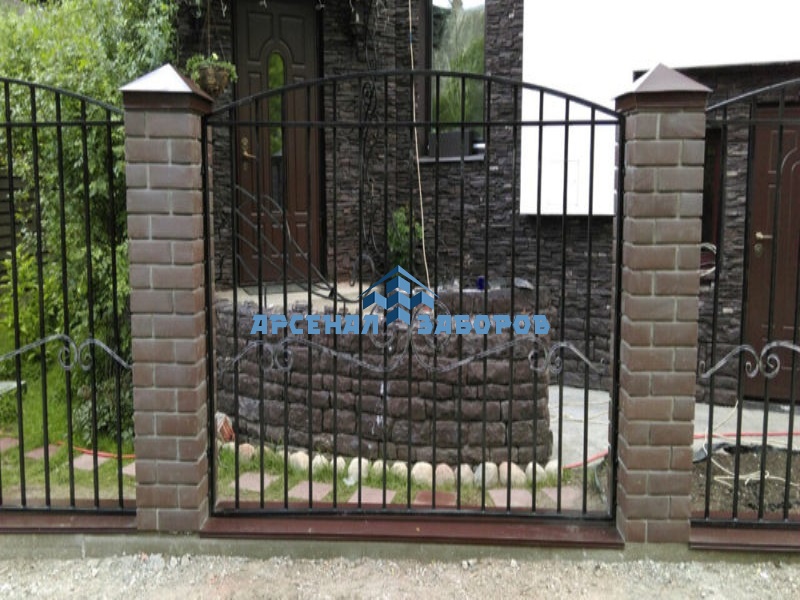 Сварные заборы с кирпичными столбами