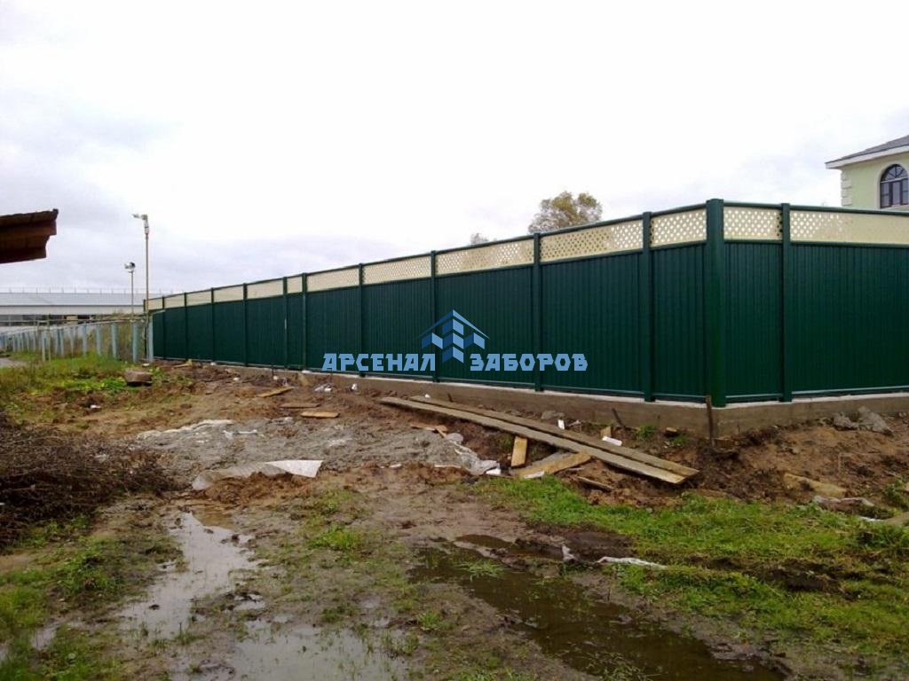 Конструкция забора из профлиста на ленточном фундаменте и с кирпичными столбами