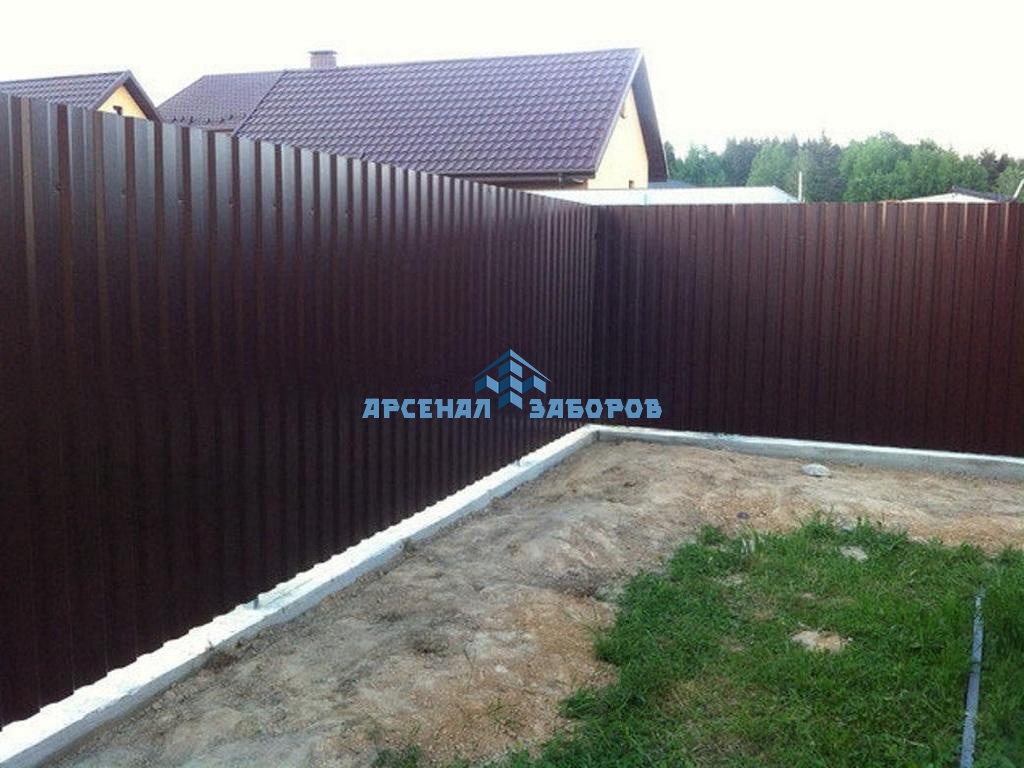 Конструкция забора из профлиста на ленточном фундаменте и с кирпичными столбами