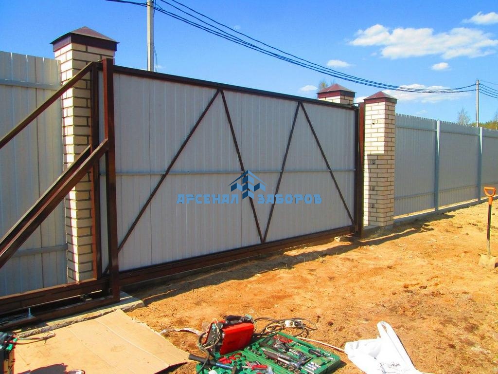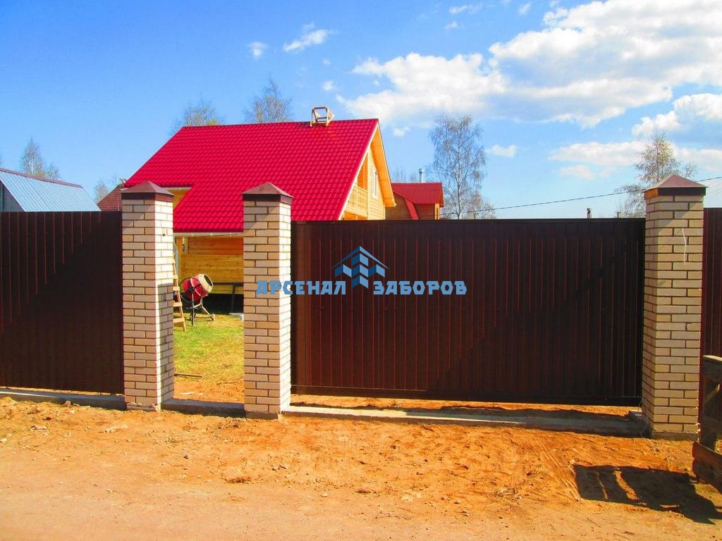 Конструкция забора из профлиста на ленточном фундаменте и с кирпичными столбами