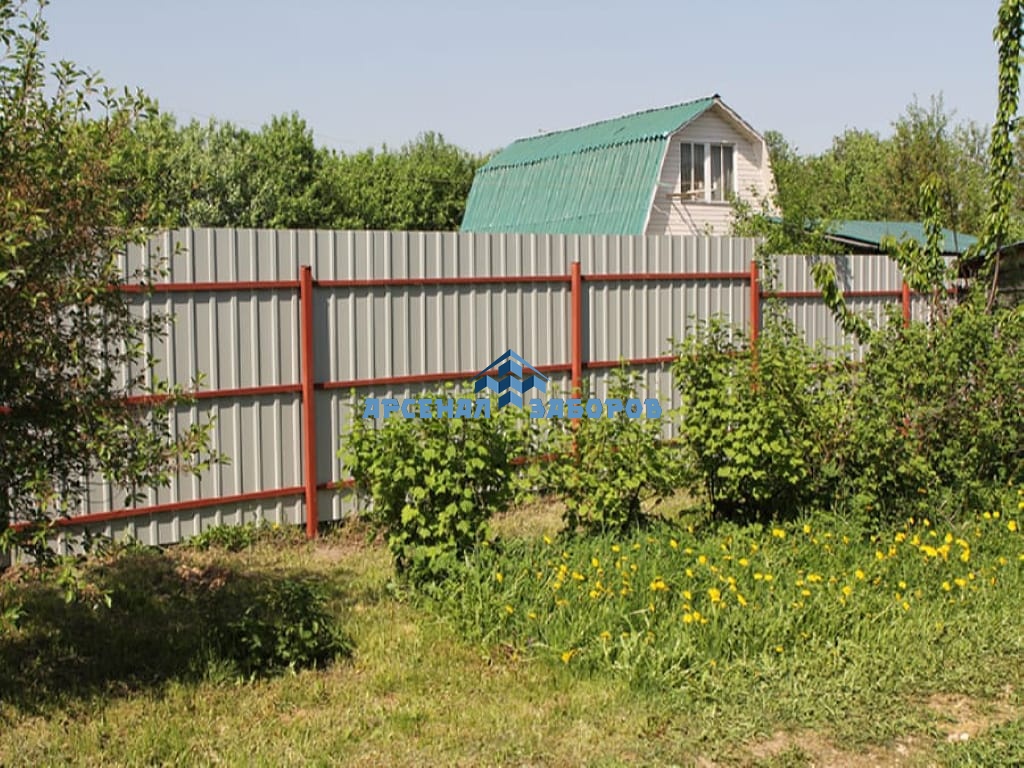 Конструкция забора из профлиста на ленточном фундаменте и с кирпичными столбами