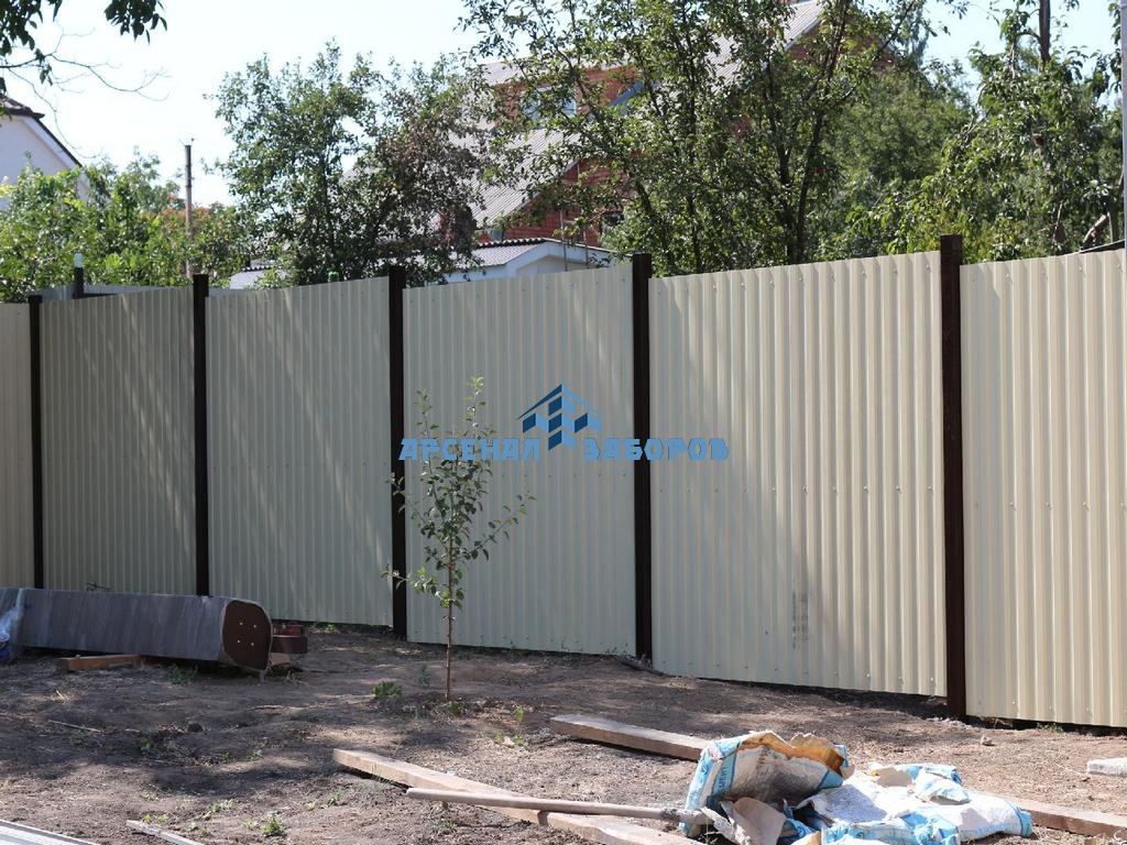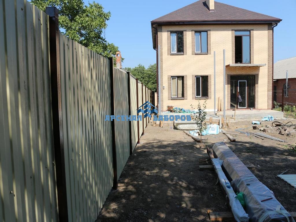 Конструкция забора из профлиста на ленточном фундаменте и с кирпичными столбами