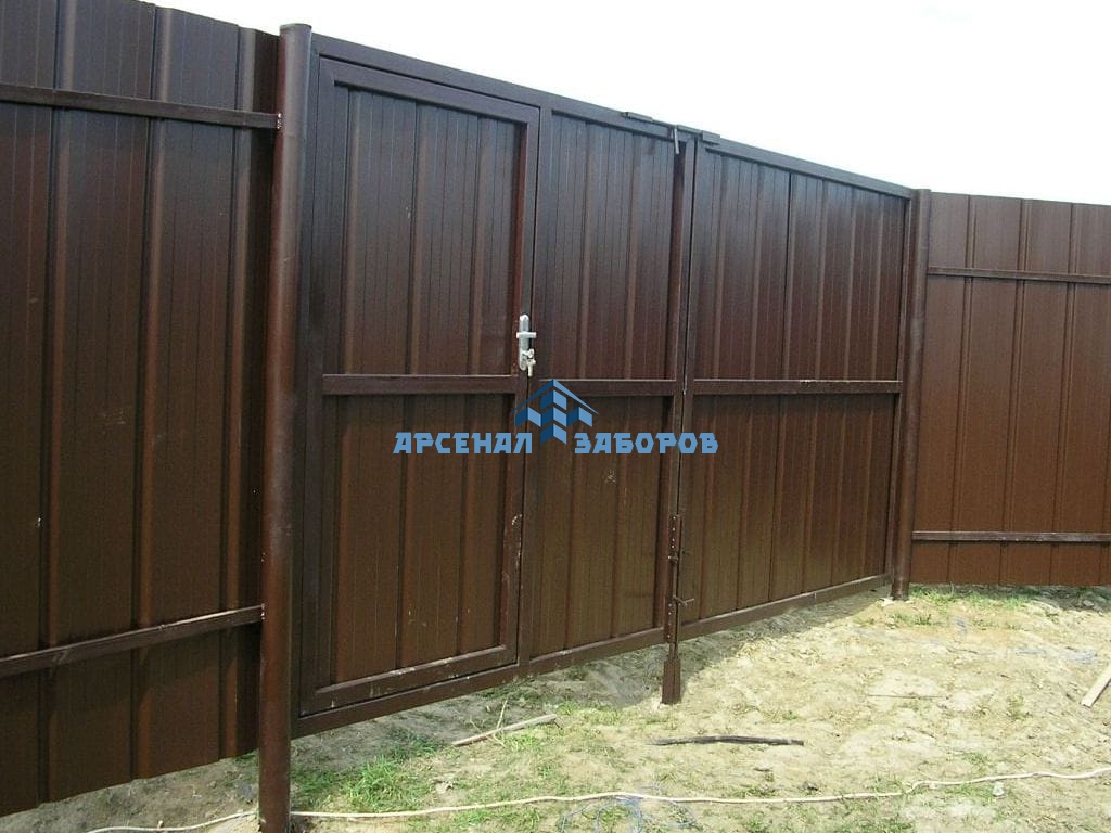 Конструкция забора из профлиста на ленточном фундаменте и с кирпичными столбами