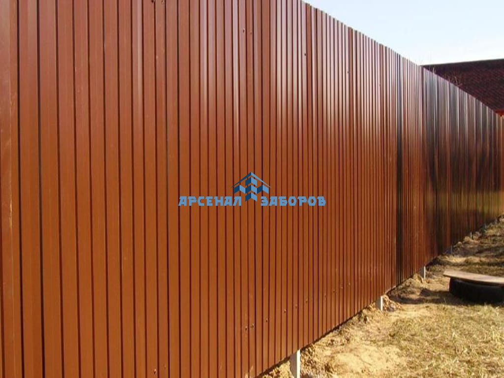 Конструкция забора из профлиста на ленточном фундаменте и с кирпичными столбами